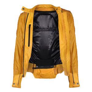 MotoGirl Valerie CE Leather Ladies Jacket – Yellow Waxed Cowhide with Protectors
