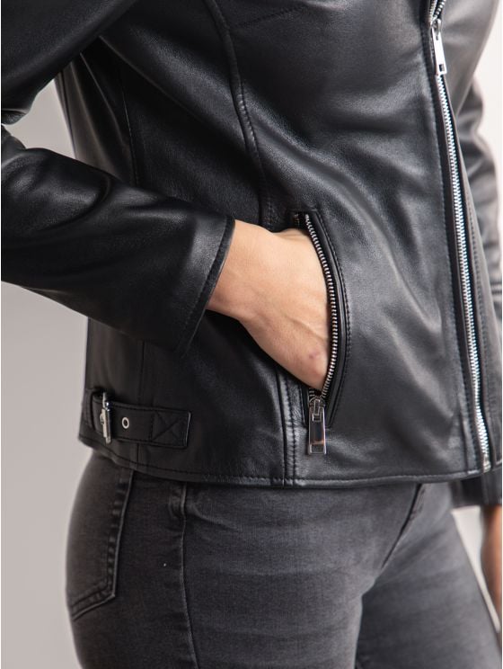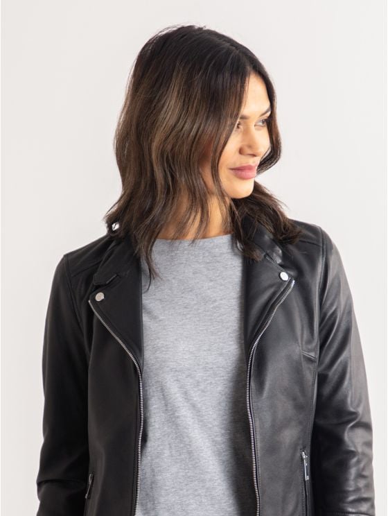 Our Nateby leather jacket in timeless black offers the perfect blend of biker aesthetic and subtle style thanks to the easy-to-wear centre zip fastening. It features just the right amount of biker details, including a press stud collar, zip pockets and metal hardware with Lakeland icon detailing. And crafted from top quality aniline leather, this jacket feels sleek and luxurious, ready to finish off any outfit in style.