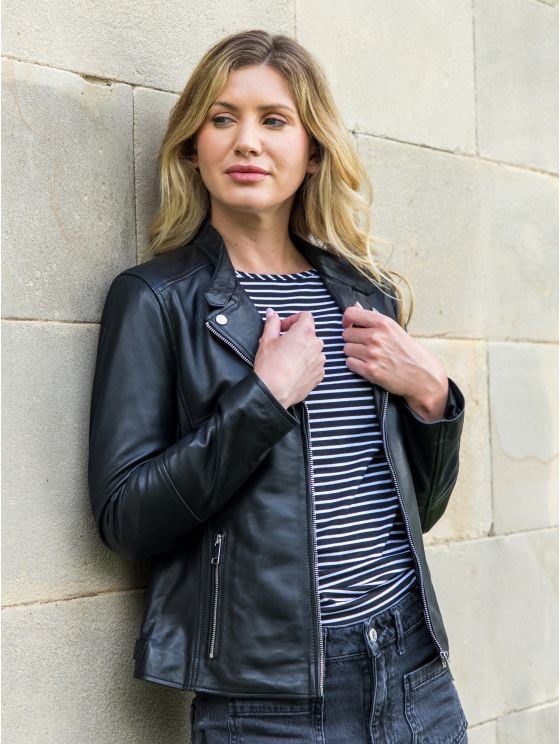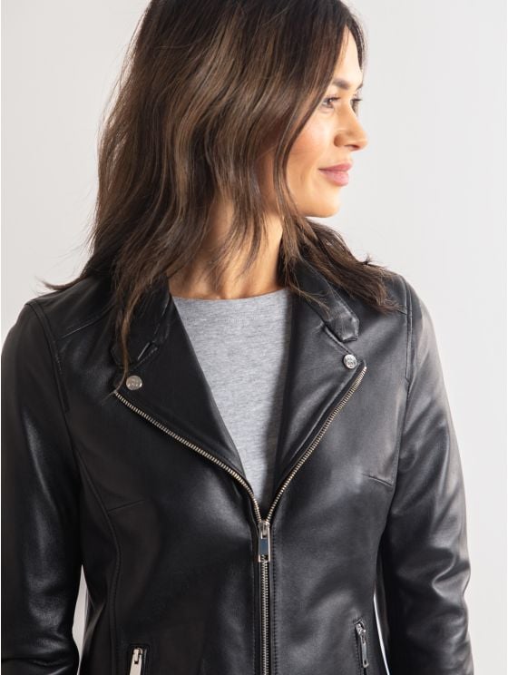 Our Nateby leather jacket in timeless black offers the perfect blend of biker aesthetic and subtle style thanks to the easy-to-wear centre zip fastening. It features just the right amount of biker details, including a press stud collar, zip pockets and metal hardware with Lakeland icon detailing. And crafted from top quality aniline leather, this jacket feels sleek and luxurious, ready to finish off any outfit in style.