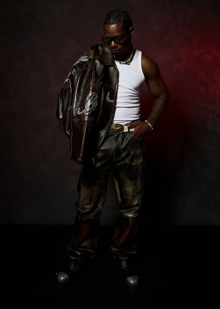 Leather jackets are usually made from cowhide, sheepskin, goatskin, or lambskin. Faux leather jackets use PU or vegan leather.