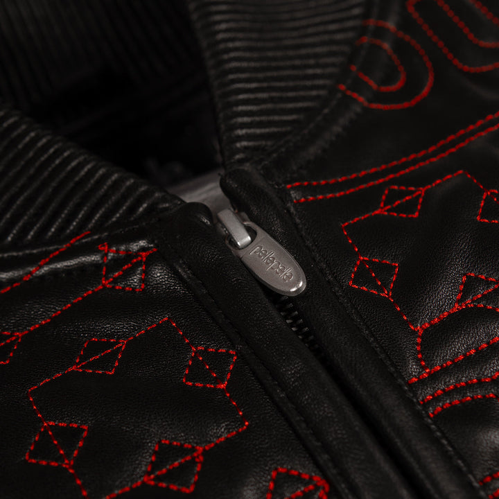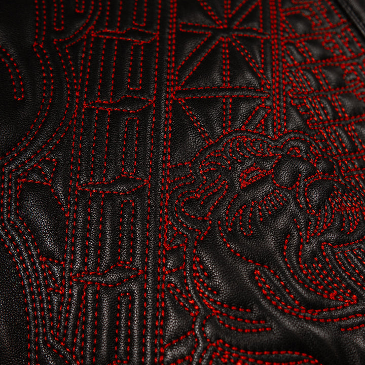 Leather jackets are usually made from cowhide, sheepskin, goatskin, or lambskin. Faux leather jackets use PU or vegan leather.
