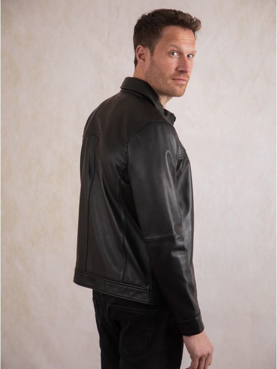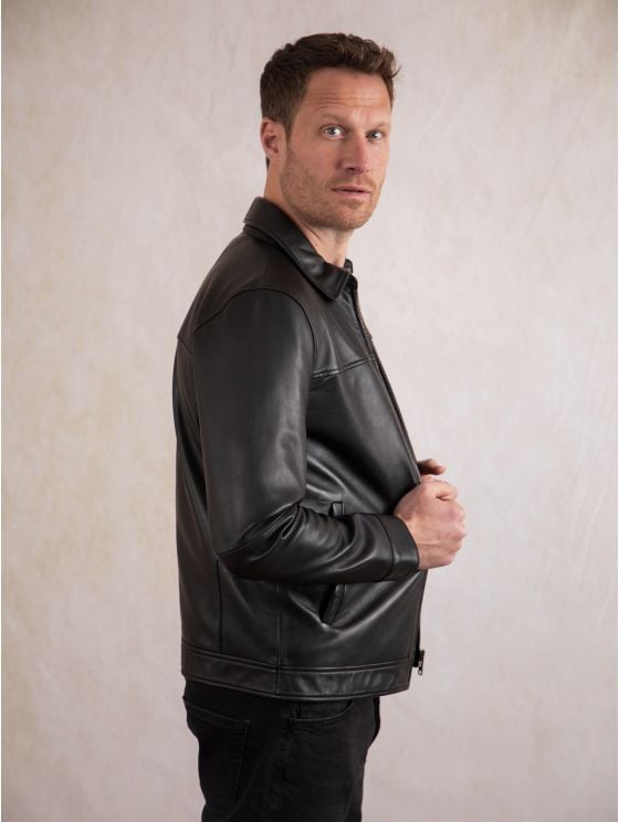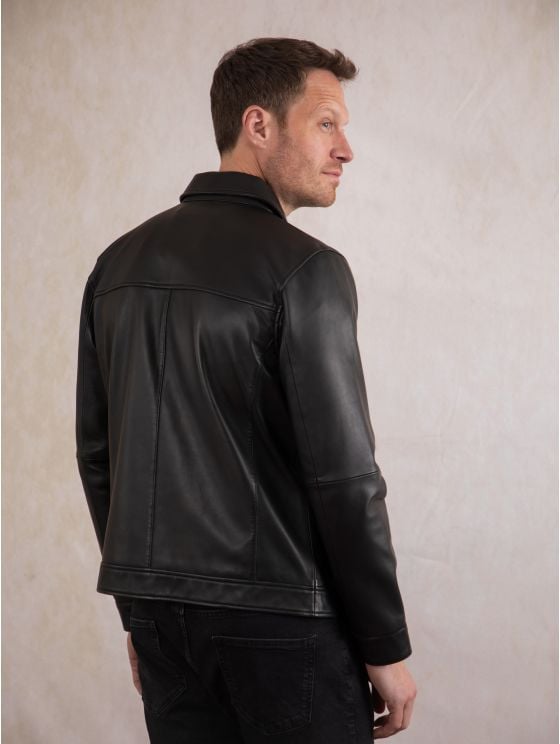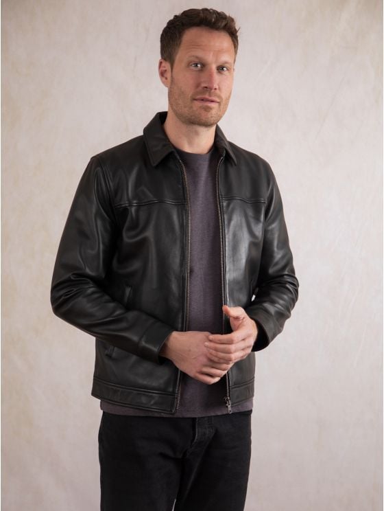 Complete any look with the clean cut Renwick Collared Leather Jacket. In a pared-back contemporary design, this jacket is crafted from premium black nappa leather for a soft and supple feel.
