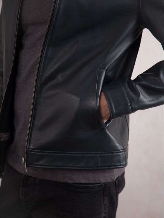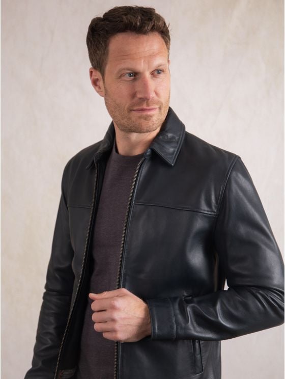 Complete any look with the clean cut Renwick Collared Leather Jacket. In a pared-back contemporary design, this jacket is crafted from premium navy nappa leather for a soft and supple feel.
