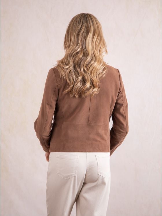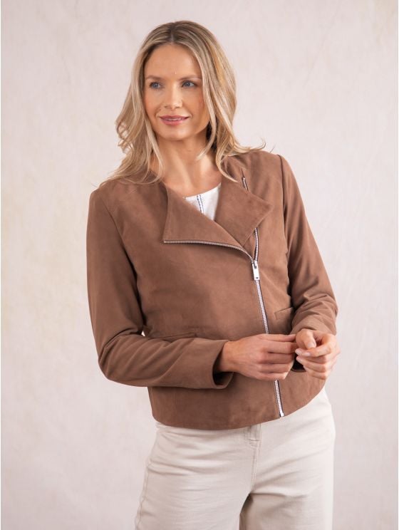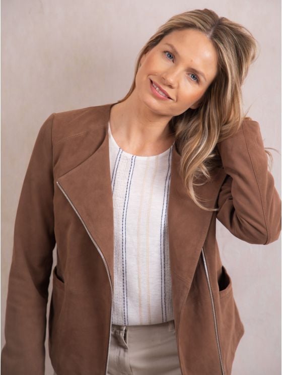 A masterclass in understated luxury, the Sawrey jacket is crafted from premium goat suede, prized for its exceptional softness and refined texture. Designed with a collarless silhouette, asymmetric zip fastening, and sleek lapels, this piece offers a modern, pared-back take on the classic biker style.