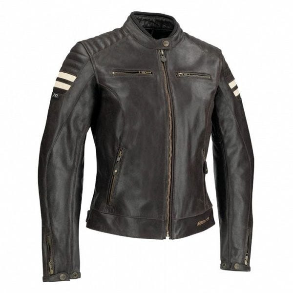 Segura Stripe CE Leather Ladies Jacket - Dark Brown/Beige