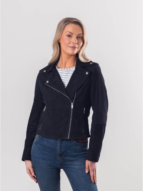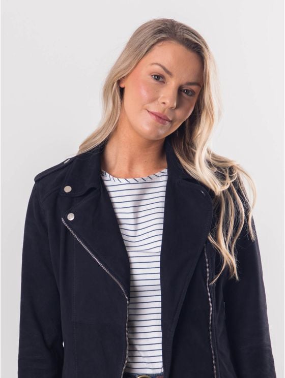 Introducing our Staveley suede jacket, cut to a classic biker silhouette with asymmetric zip closure, epaulettes and a faux press stud lapel collar. The suede material we've crafted this jacket from softens the classic edgy biker look, creating the ultimate soft chic. The Staveley will finish off any smart or casual look this spring summer and beyond.