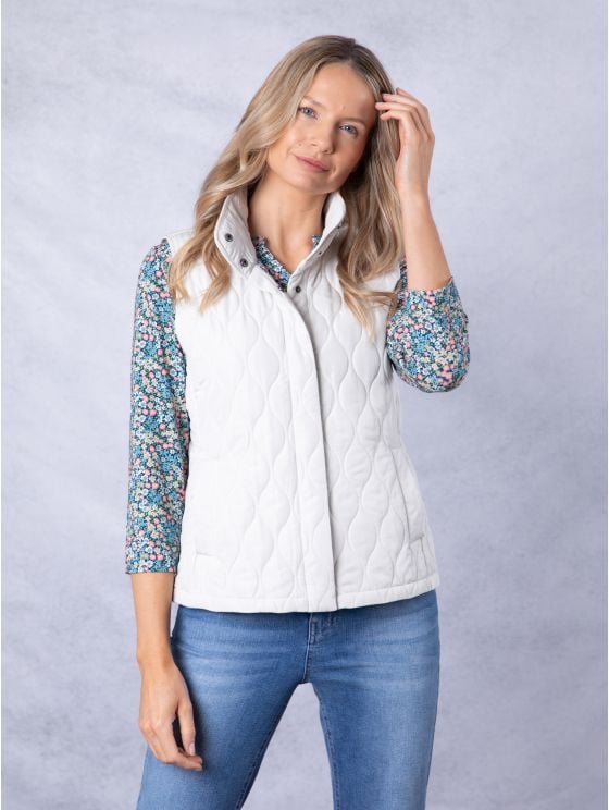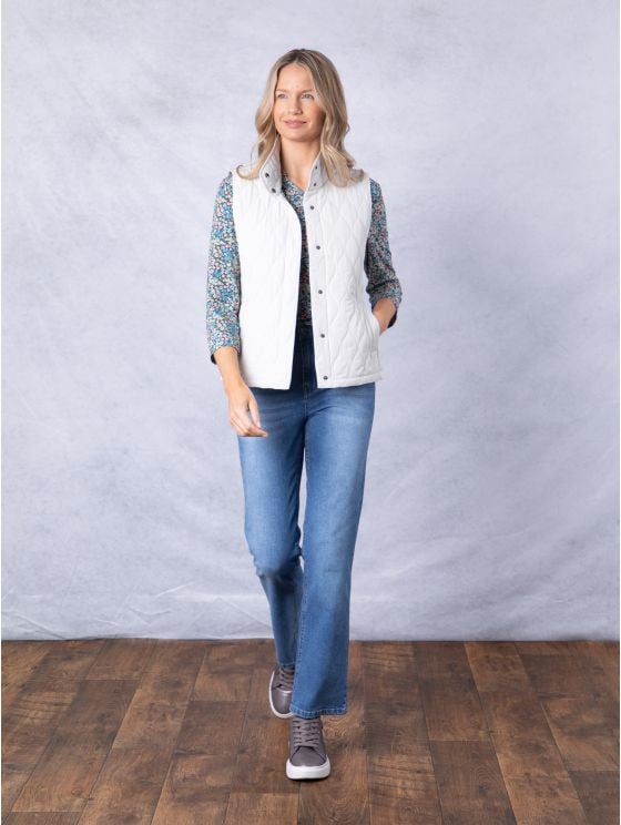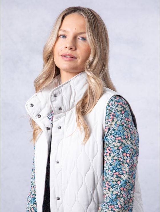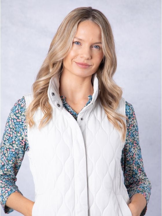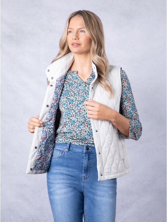 Elevate your outerwear game with the Stella Quilted Gilet, designed for effortless style and ultimate comfort. Crafted from a soft, cosy fabric, this lightweight yet warm piece features a timeless quilted design that makes layering both chic and practical. The easy-to-wear press-stud front fastening ensures a comfortable fit, while the exclusive floral print lining adds a touch of elegance. Whether you're heading out for a casual day or layering up for colder weather, the Stella Quilted Gilet is your go-to wardrobe staple for a refined, cozy look. Ideal for year-round layering, it blends function with fashion.