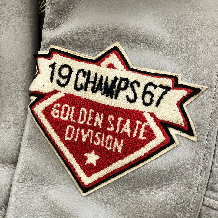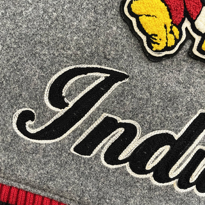 Chenille patches and embroidery.