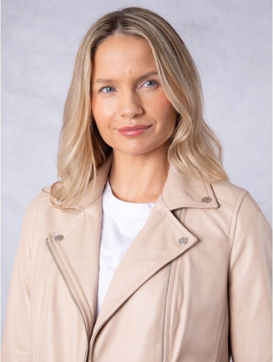 A timeless outerwear essential, the Tarraby reimagines the classic biker jacket with refined detailing for any occasion. Crafted from supple semi aniline leather, the Tarraby is effortlessly versatile, able to be dressed up or down as needed. Featuring an asymmetric zip fastening and iconic biker lapels and collar, it’s tailored to enhance your natural curves, creating a flattering, stylish silhouette.
