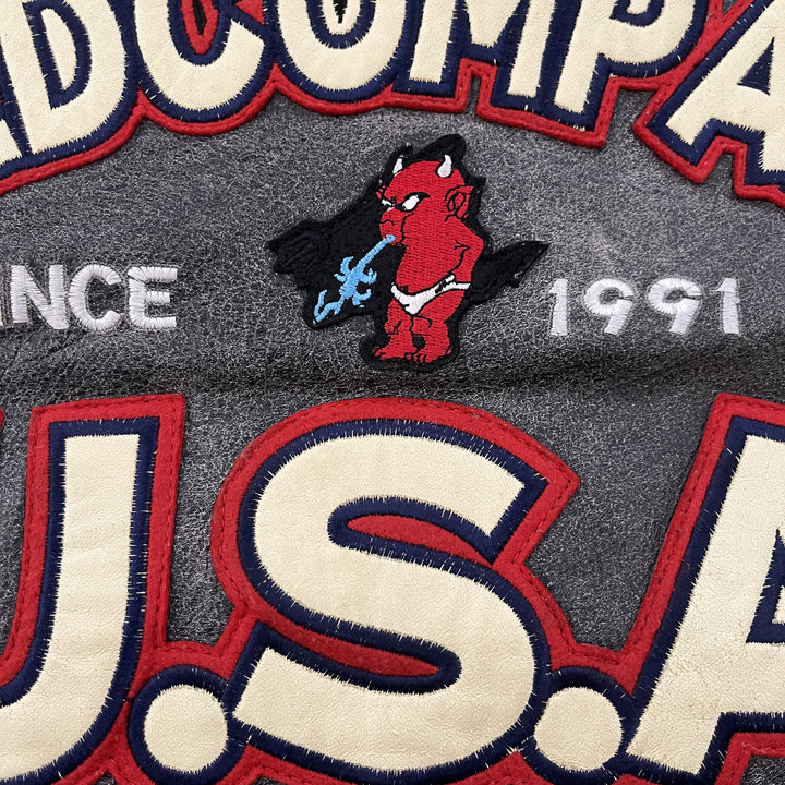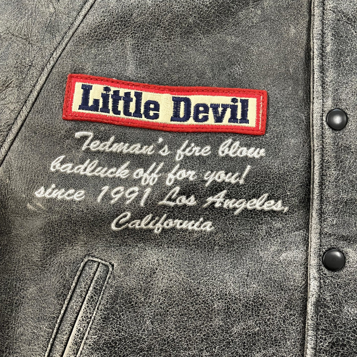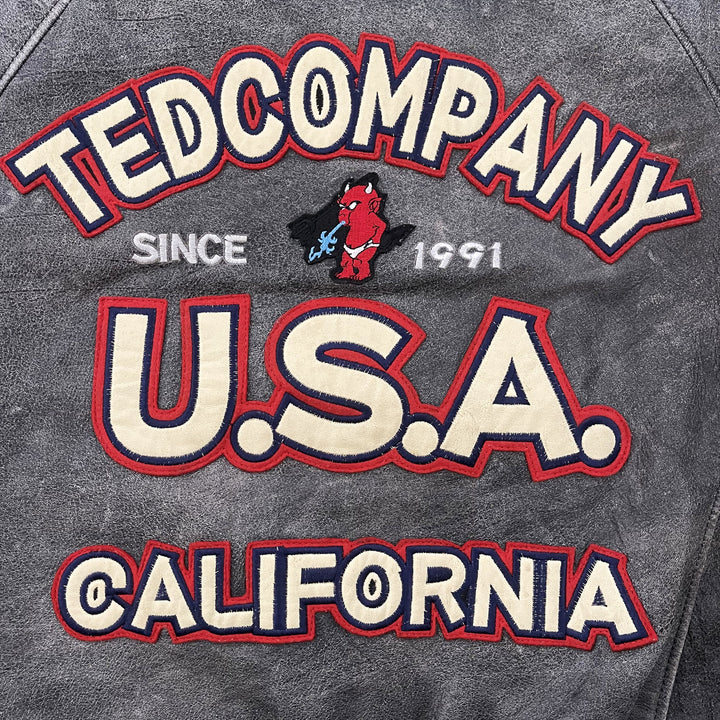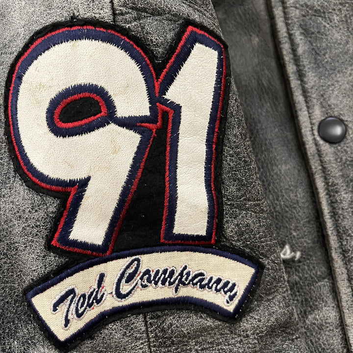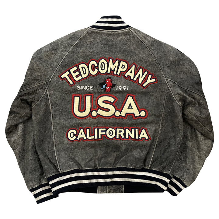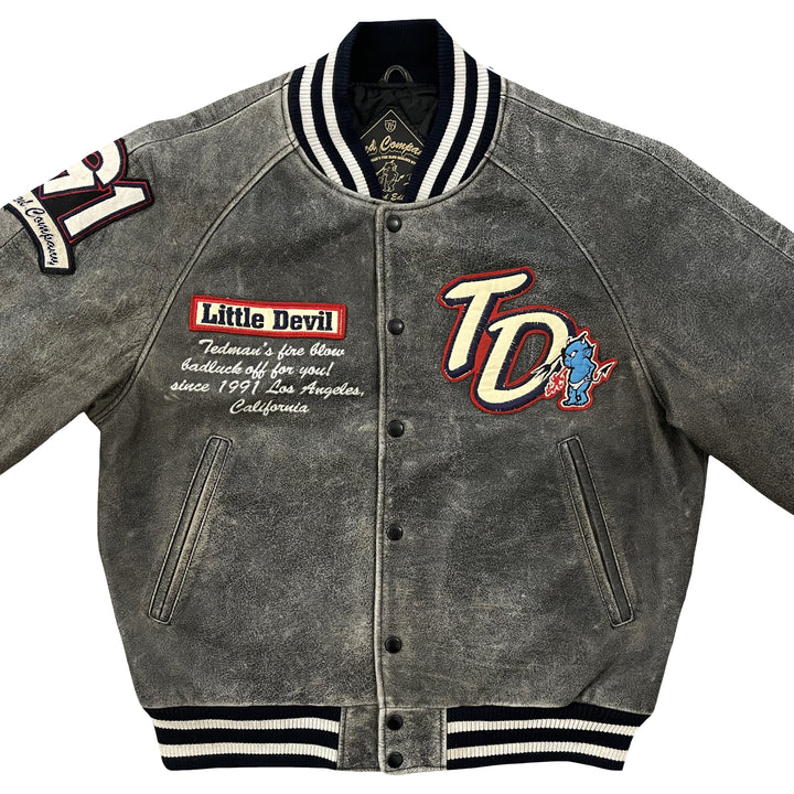 Tedman's Acid Wash Leather Varsity Jacket - L