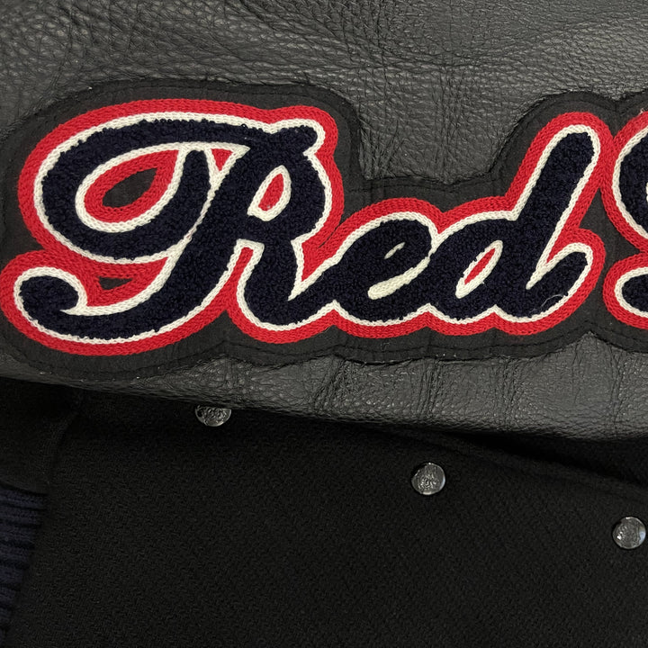 Leather jackets are usually made from cowhide, sheepskin, goatskin, or lambskin. Faux leather jackets use PU or vegan leather.