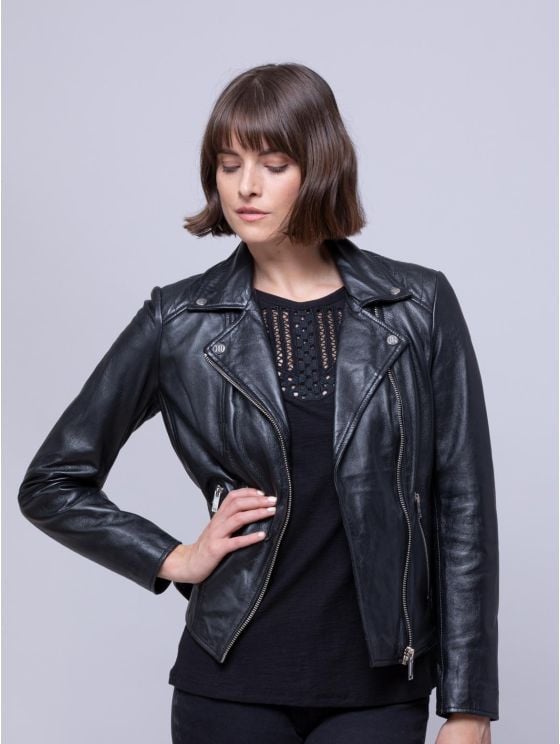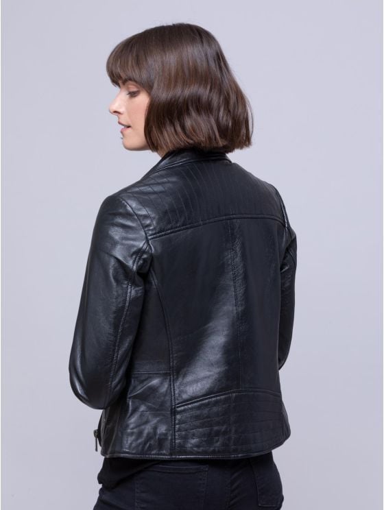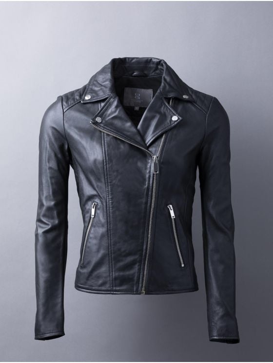 Leather jackets are usually made from cowhide, sheepskin, goatskin, or lambskin. Faux leather jackets use PU or vegan leather.