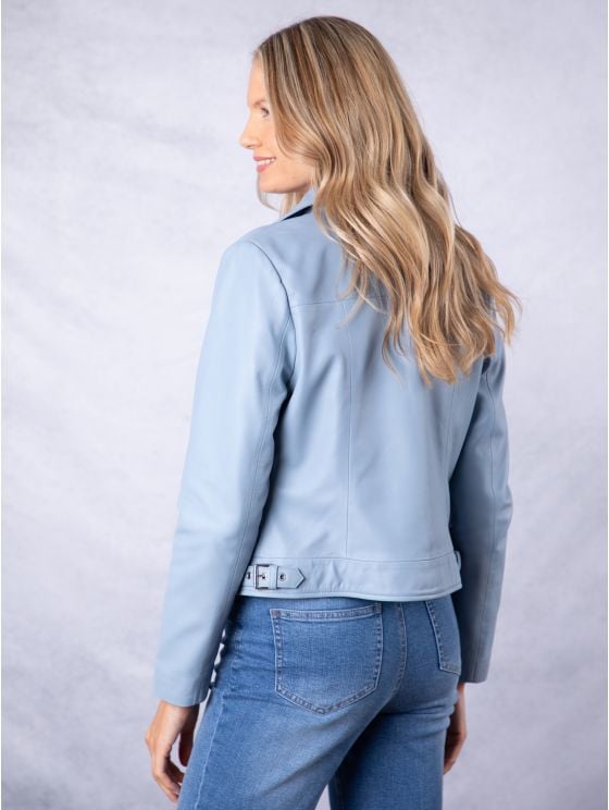 Update your outerwear this season with the stunning Thornhill leather biker in sky blue. We've crafted this style from butter soft nappa leather, which is designed to last you years and get better the more you wear it. Thornhill features all the classic biker details, including an asymmetric zip front, lapel collar and adjustable side buckles. This is a luxurious, fresh wardrobe option you won't want to miss!