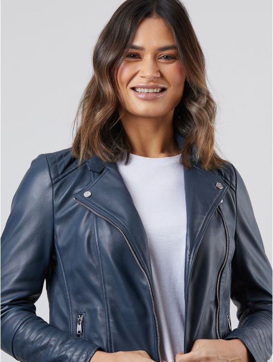 A Lakeland favourite, our Toni leather biker jacket has now been designed in a navy hue, for a new season update.