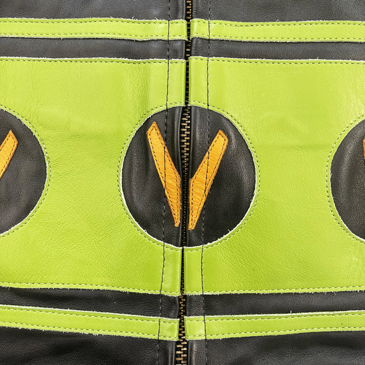 Leather jackets are usually made from cowhide, sheepskin, goatskin, or lambskin. Faux leather jackets use PU or vegan leather.