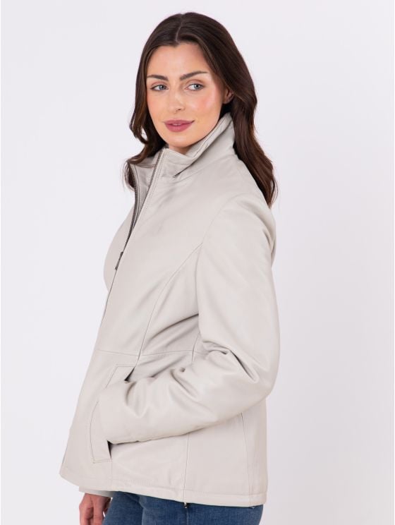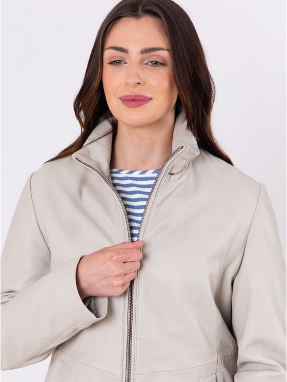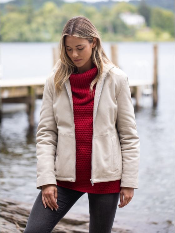 Sleek and sophisticated, the Wetherhill jacket is a versatile addition to your outerwear wardrobe. Lightly wadded and with ribbed jersey cuffs, the Wetherhill will keep you warm and cosy without the bulk. Crafted from fine leather in a neutral pumice shade, the Wetherhill is the ultimate wear-with-anything piece.