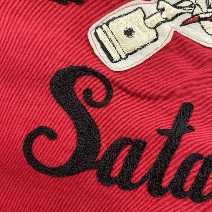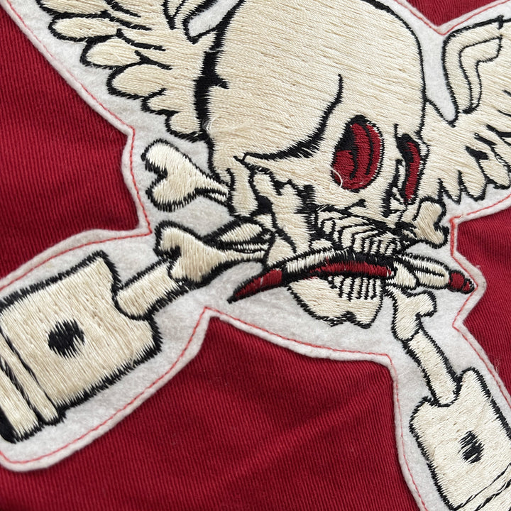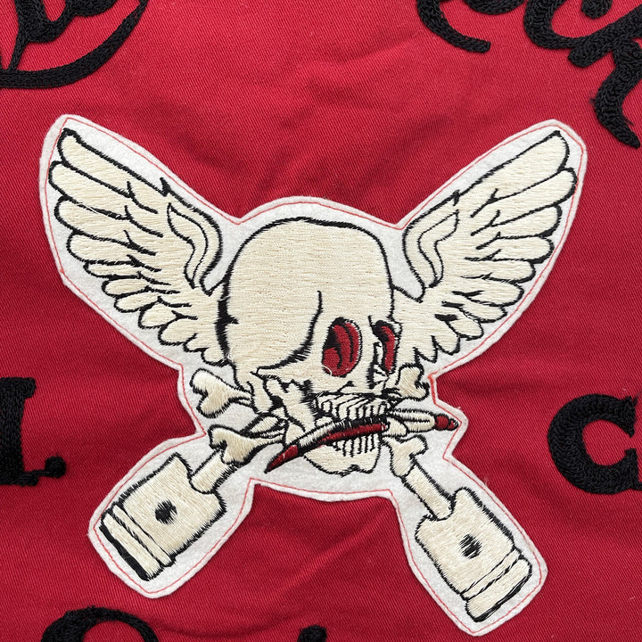 Skull head patch and detailed embroidery.