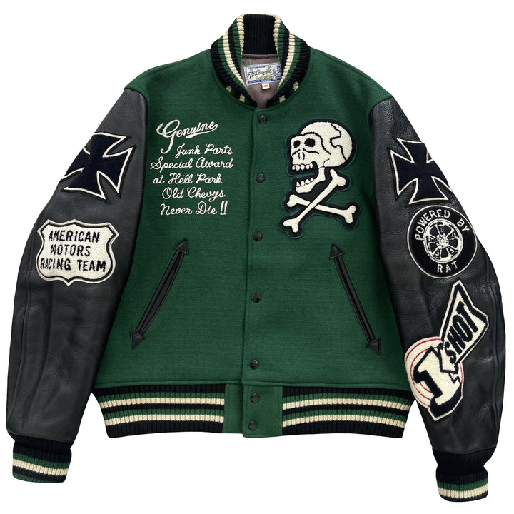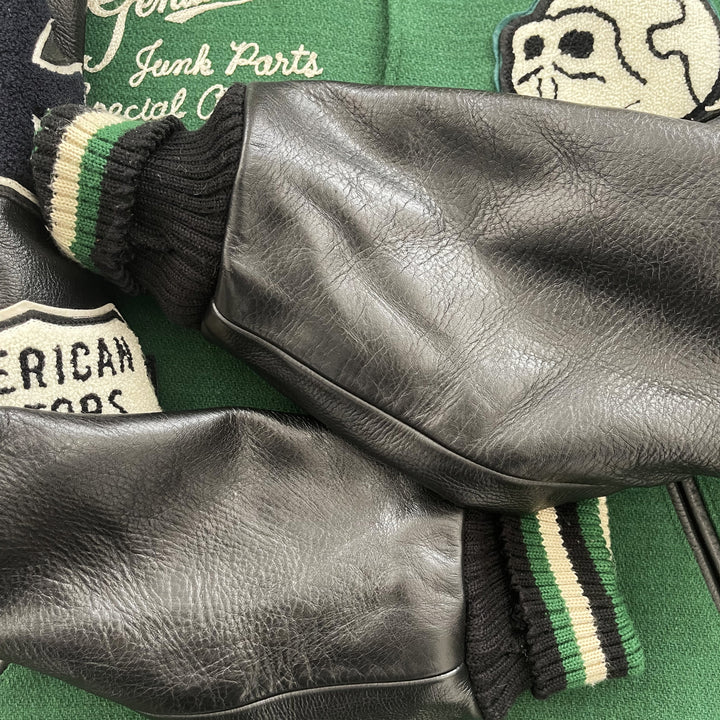 Leather jackets are usually made from cowhide, sheepskin, goatskin, or lambskin. Faux leather jackets use PU or vegan leather.