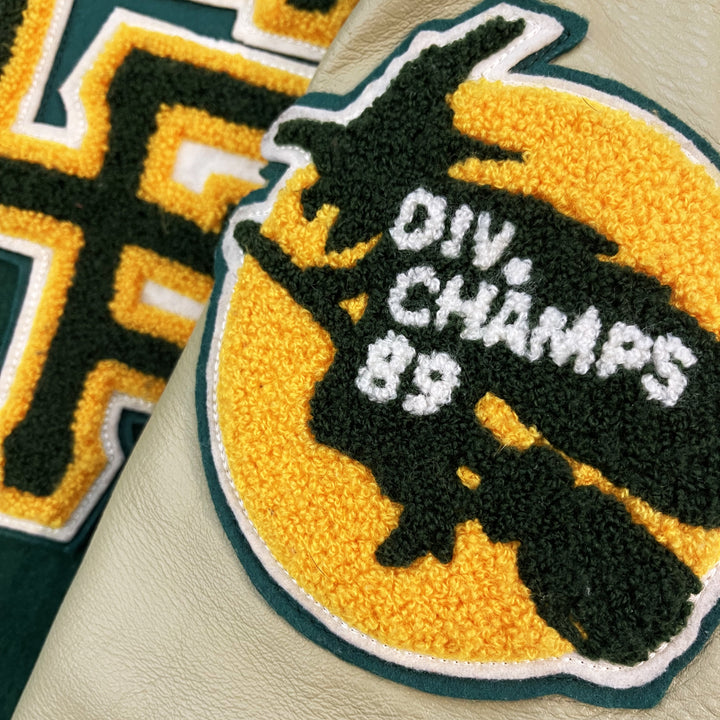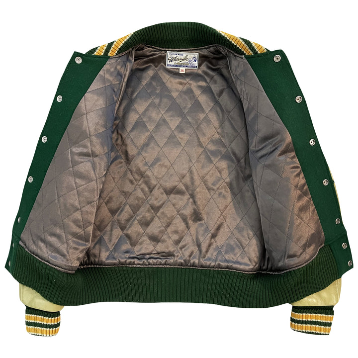 Leather jackets are usually made from cowhide, sheepskin, goatskin, or lambskin. Faux leather jackets use PU or vegan leather.