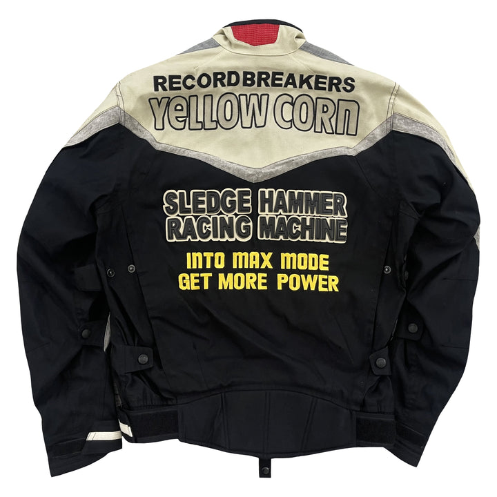 No, a leather jacket should not be machine washed. Instead, wipe with a damp cloth and use leather cleaners for stains.